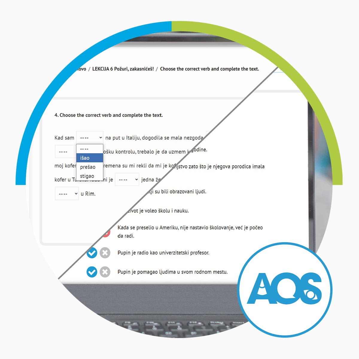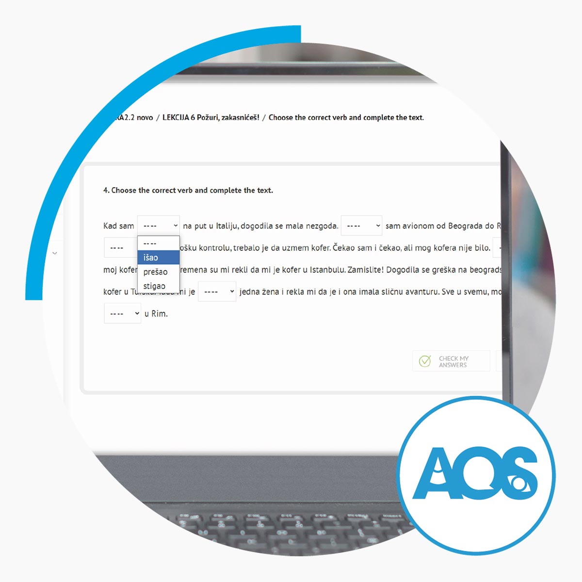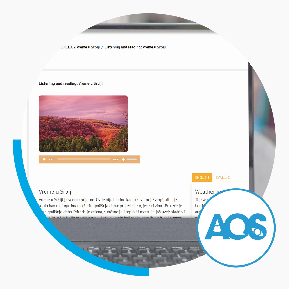 Za osnovni (A2) nivo učenja srpskog jezika Autori: AOS tim Regularni A2.1 program je kreiran za sve koji poseduju osnove srpskog jezika, mogu da razumeju i vode jednostavne razgovore i žele da razumeju i kažu više. Reči i izrazi koje AOS A2.1 daje su vezani za putovanja, sport, modu, opis zanimanja, vremensku prognozu, kao i situacije kod lekara. Gramatika nudi obnavljanje sadašnjeg vremena i uvod u prošlo vreme, komparaciju prideva i priloga, indirektni govor i mnoge druge kategorije.  Program se sastoji od deset lekcija i pet revizornih testova. Nakon svih lekcija i testova, dobijate onlajn Svedočanstvo o  uspešno završenom programu. * Pristup programu traje 12 nedelja.