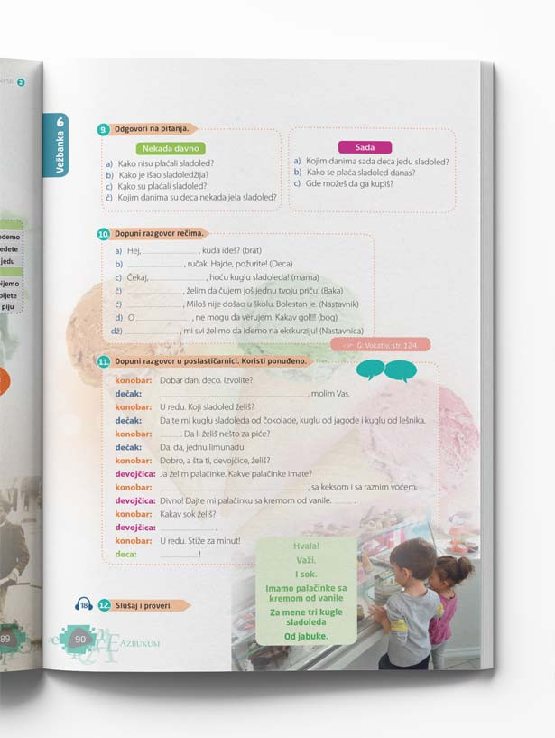 Vežbanka je sastavni deo udžbenika i uz svaku lekciju nudi dodatne segmente za uvežbavanje novih reči, izraza, kao i gramatičkih kategorija.