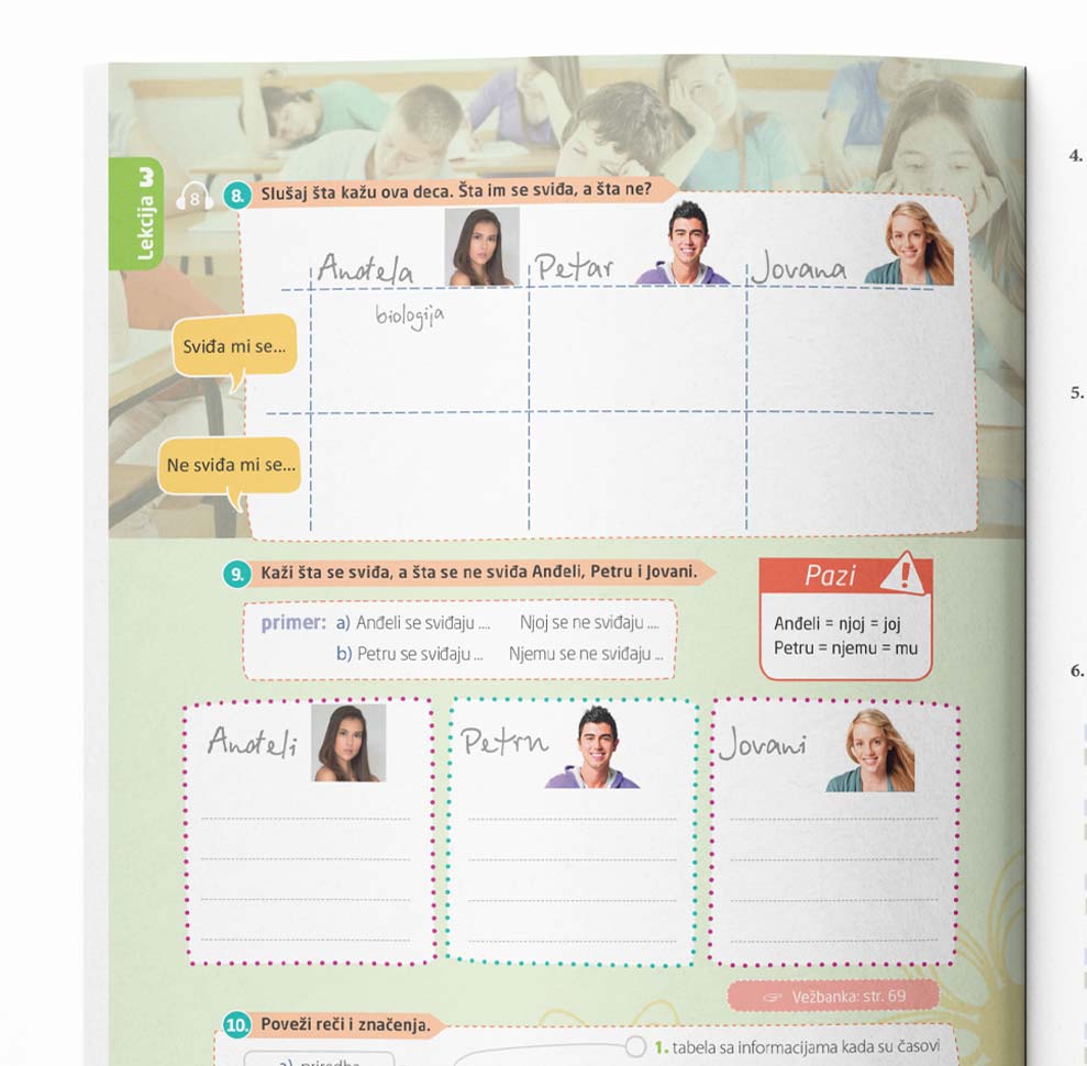 8. Slušaj šta kažu ova deca. Šta im se sviđa, a šta ne?