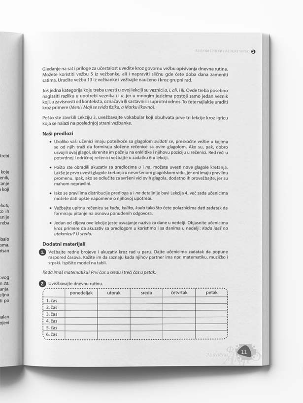 Predavačima je namenjen Priručnik za lakše snalaženje i lakšu primenu sadržaja udžbenika u nastavi. Prateći savete i predloge autorki, predavačima se pruža prilika da imaju profesionalnu podršku i olakšan put ka uspešnom času i zadovoljnim polaznicima. Priručnik se nalazi u PDF-u i preuzima se sa internet adrese date na unutrašnjim koricama udžbenika.