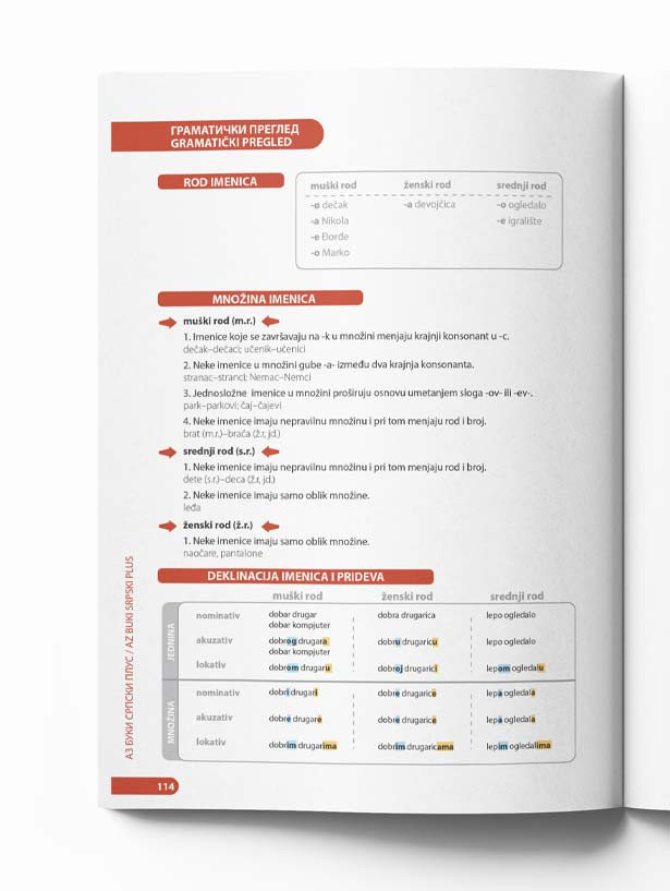 Az buki srpski plus je namenjen mladima uzrasta od 12 do 16 godina koji tek počinju da uče srpski jezik. Bogato ilustrovan i u punom koloru, ovo je pažljivo osmišljen udžbenik koji sadrži lekcije, igre, audio-zapise, testove, vežbanku i rečnik sa prevodom na engleski, nemački, ruski, francuski i mađarski jezik.