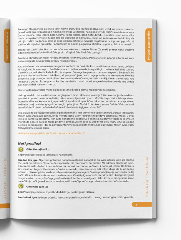 Priručnik je izuzetno korisno štivo za predavače koji rade po ovom udžbeniku. Autorke nude svoje savete i predloge kako najlakše da primene sadržaj čitavog programa Az buki srpski plus.