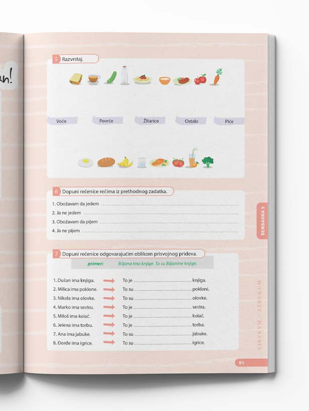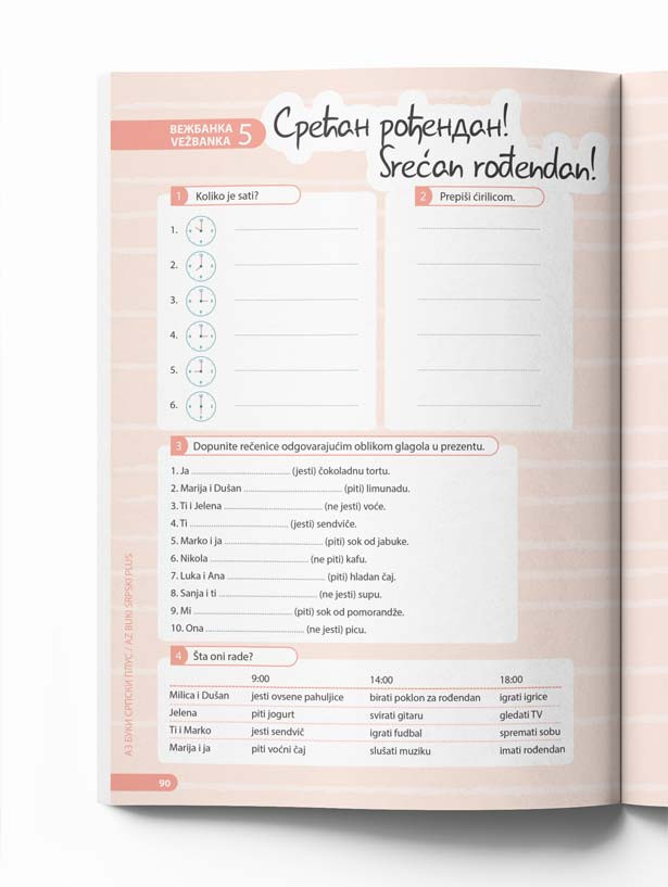 Vežbanka se sastoji od osam segmenata koji tematski i sadržinski prate osam lekcija. Uz dodatne vežbe i igre na lak i zabavan način se još brže usvaja gradivo.